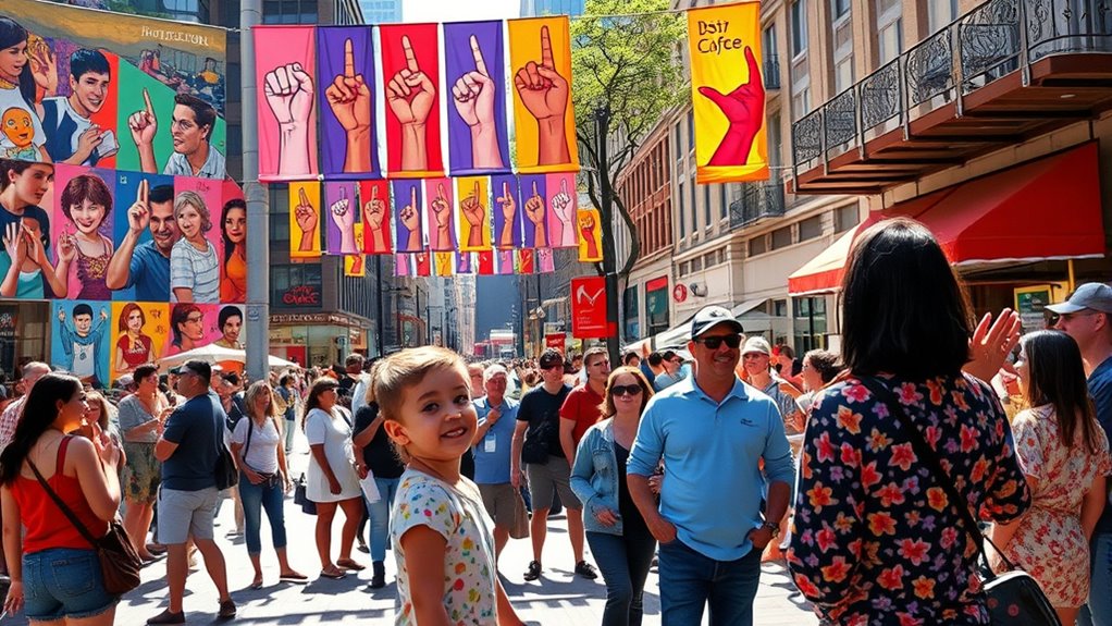 By incorporating Deaf culture into cultural districts, you help foster inclusivity and a broader understanding of unique experiences. Community events and festivals in these urban centers can showcase Deaf art and performances, creating social connections and cultural exchange. This engagement not only enriches the community but also drives urban renewal, attracting new residents and businesses. Emphasizing cultural districts in urban planning creates welcoming spaces where everyone can thrive. Additionally, mindfulness techniques can be incorporated into community events to promote awareness and understanding of Deaf culture. Developing a growth mindset within these initiatives encourages ongoing learning and adaptation to better serve all community members. Furthermore, embracing emotional alignment can enhance interactions within diverse groups, fostering deeper connections and understanding.
